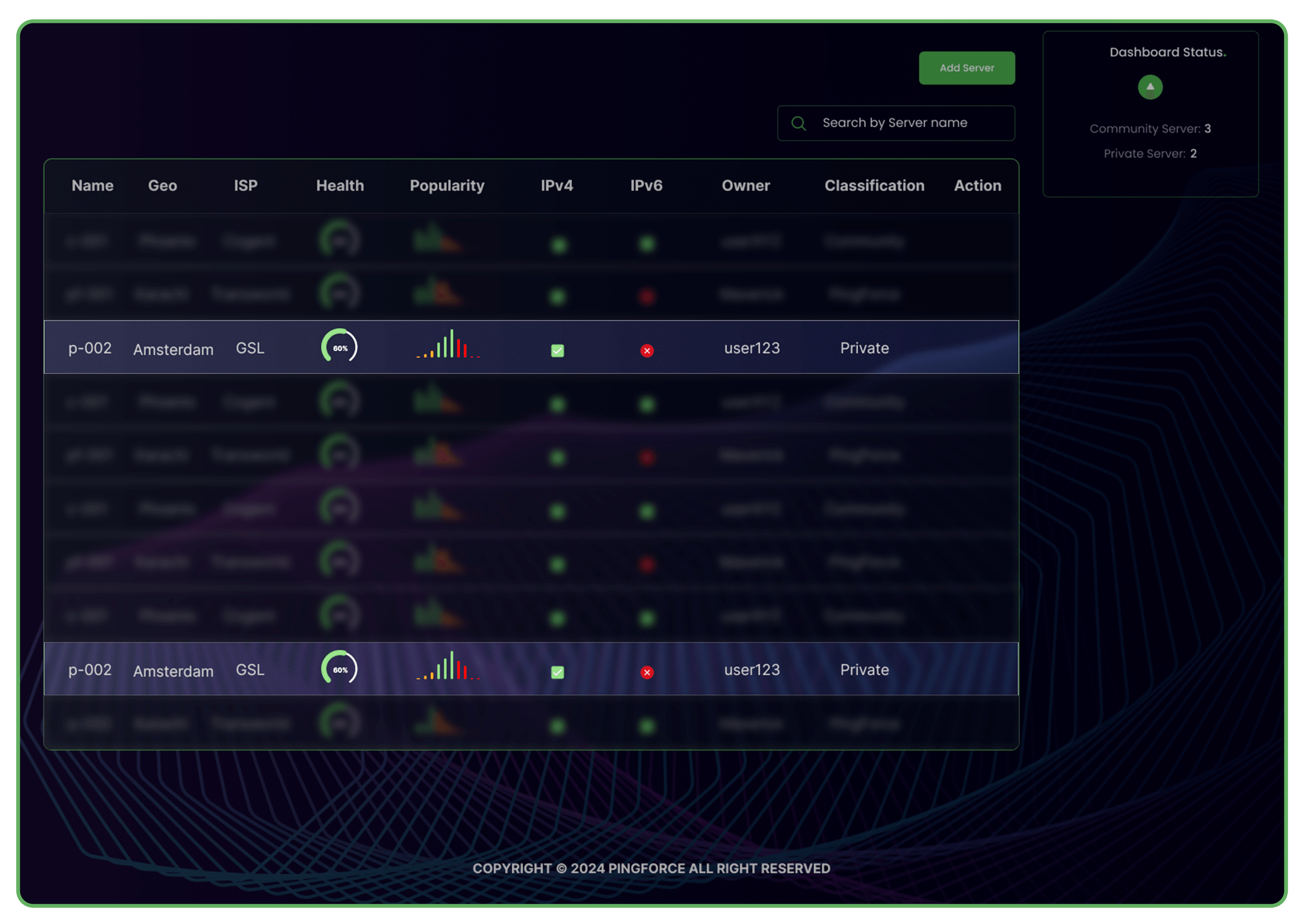 They are user-contributed servers that join PingForce’s monitoring network. In return for sharing your server, you unlock extra test slots for your own monitoring needs.