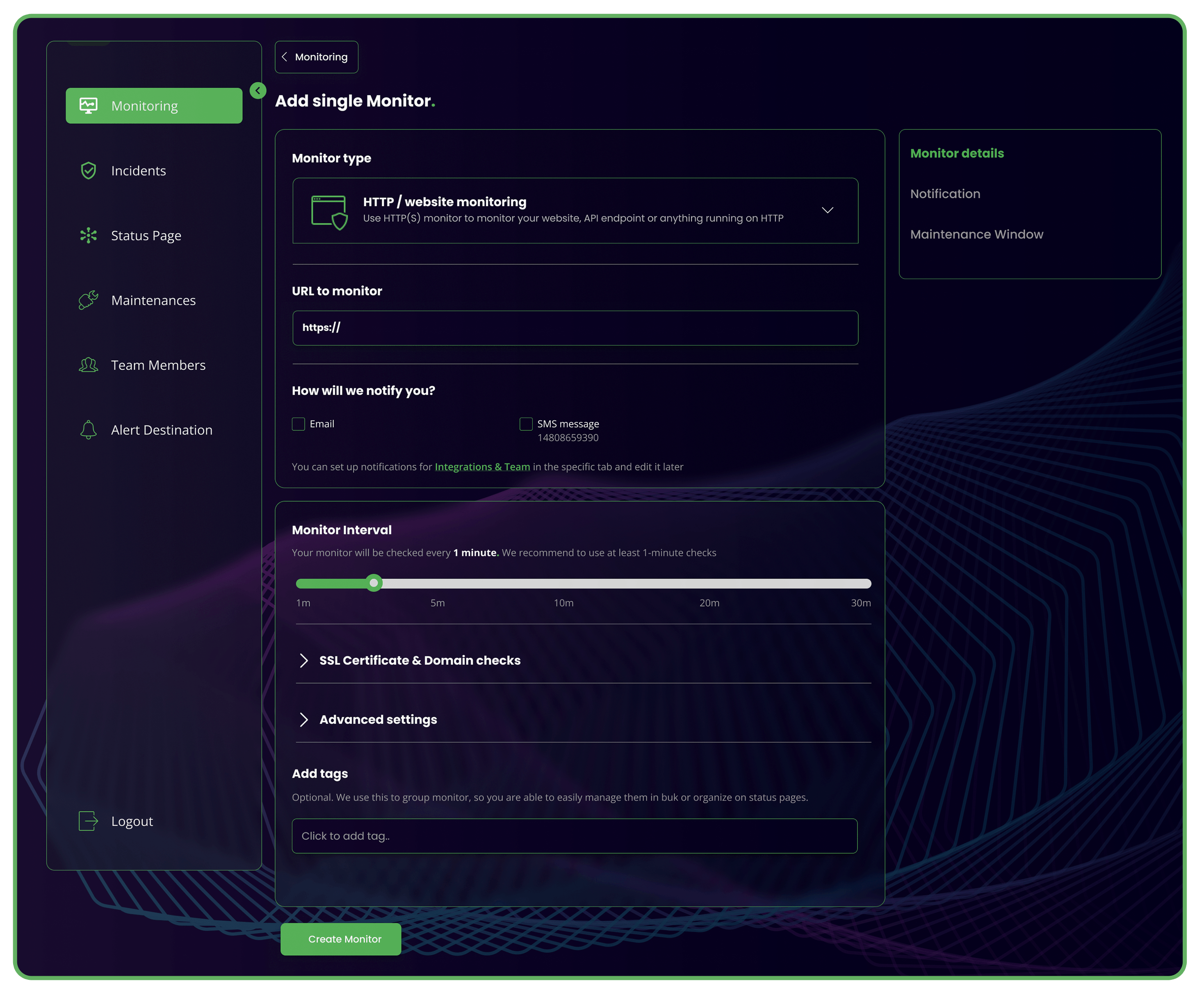 Yes, you have full control. Set custom schedules to mute alerts during off-hours, configure different thresholds for various monitors, and choose between SMS/email notifications based on urgency.